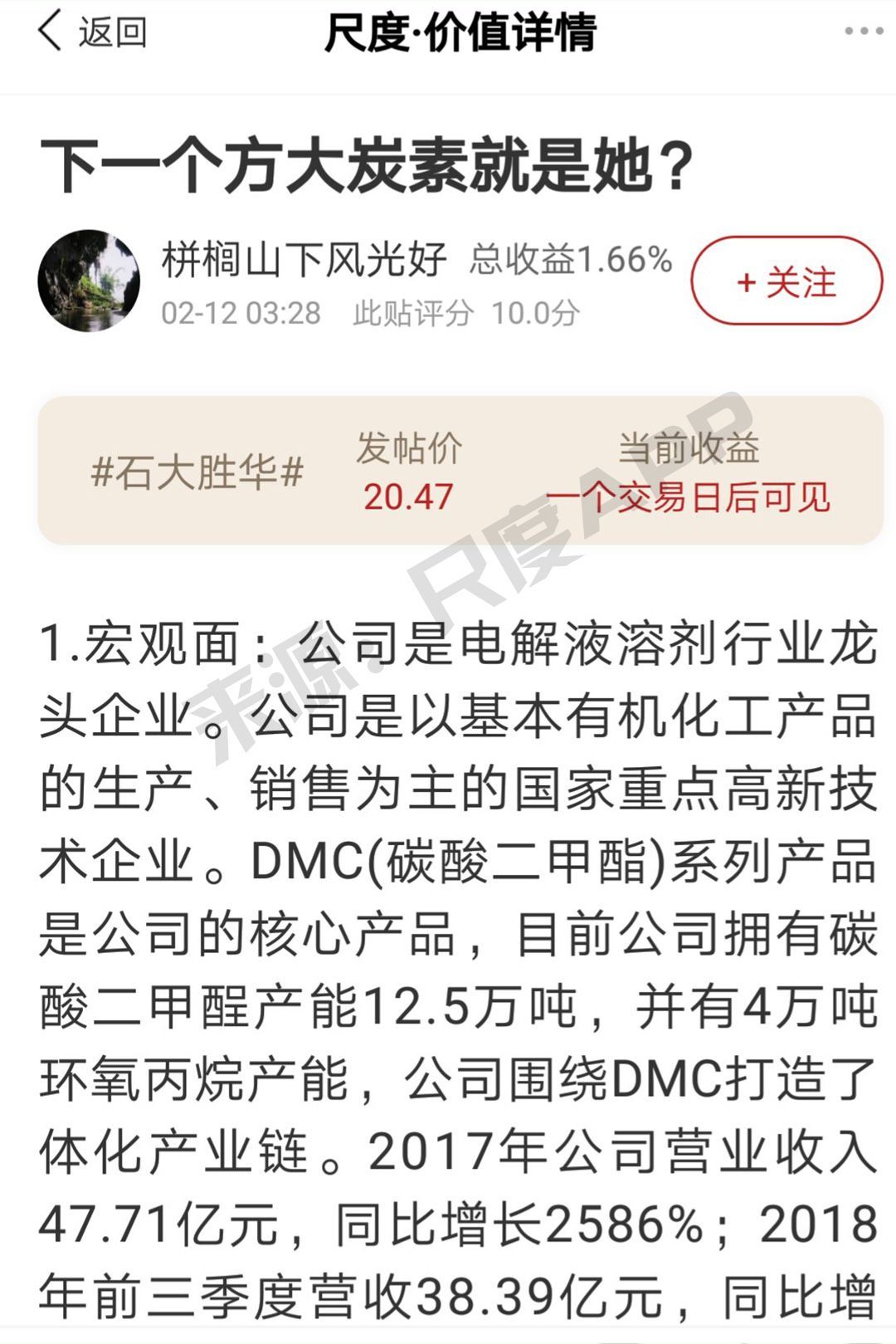 看似好激动,那么在A股有相关概念股吗?当然有!在尺度app价值区,一位网友近期分析了相关上市公司#石大胜华(603026)#,具体内容如下: