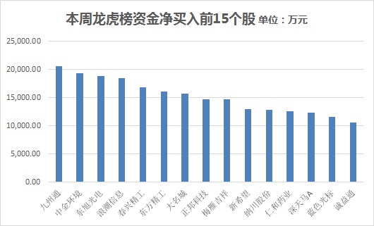 个股龙虎榜净买入金额居前的15只个股分别为: