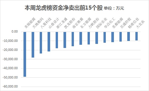 个股龙虎榜净卖出金额居前的15只个股分别为: