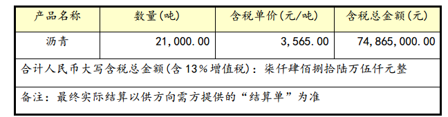 公告显示,中油三维丝先后与天禹化工签订两份采购合同,主要内容为中油三维丝向天禹化工采购沥青,采购金额分别为7010.00万元(实际成交额7015.61万元)、7486.50万元,合计采购金额为1.45亿元。