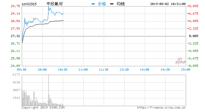 新浪财经讯 8月2日消息,氟化工概念股盘中持续走强,截至发稿, ,多氟多(002407)、三美股份、雅克科技(002409)等多股走强。