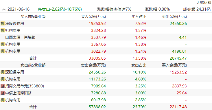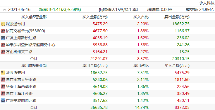 今日,受消息面影响,A股六氟磷酸锂概念股普跌,天赐材料、多氟多(002407,股吧)、天际股份(002759,股吧)均砸出跌停板,永太科技从集合竞价阶段到开盘后走出了天地板,并因此登上龙虎榜。消息显示,北向资金占据买一卖一席位,日内净卖出高达1.3亿。知名游资广发上海新松江路、顶级游资常用席位深圳益田路荣超商务中心也现身买三、买四席位。而卖二、卖四席位,出现了一线游资国泰君安南京太平南路和顶级游资章盟主常用席位国泰君安上海江苏路,分别净卖出3428万元、4226万元。