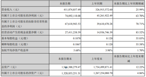 报告期内经营活动产生的现金流量净额为27,411,238.59元,归属于上市公司股东的净资产1,328,853,251.31元。